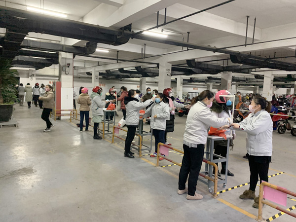 疫情猛于虎,防控是關(guān)鍵。復(fù)工后,車庫內(nèi)9個測溫消毒通道一字排開,每位員工佩戴口罩,手部消毒、測溫合格后方可進(jìn)入生產(chǎn)區(qū)域,入廠后上、下午一天兩次的定時測溫,專人記錄,形成“一人一檔”,確保每日健康監(jiān)測到位,不漏一人;食堂、衛(wèi)生間、電梯、通道等公共區(qū)域安排專人一天兩次做好消毒工作;食堂內(nèi),每張餐桌都加上了高高的隔檔,形成一人一坐的“獨(dú)立卡坐”,以往的自助餐模式更改為四菜一湯的套餐,由防護(hù)嚴(yán)密的食堂大師傅們親自發(fā)放。員工嚴(yán)格按照分批就餐時間表,在員工志愿者的引導(dǎo)下有序排隊、文明就餐;車間內(nèi)隨處可見防疫的應(yīng)知應(yīng)會和人手一份的防疫小卡冊,讓每位員工對防疫知識都了然于胸。