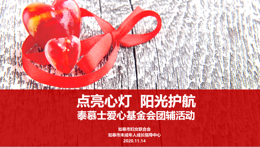 【概要描述】?11月14日,泰慕士愛心基金會邀請如皋市婦聯(lián)、如皋市未成年成長指導(dǎo)中心老師,對基金會孩子開展“點(diǎn)亮心燈 ?陽光護(hù)航”團(tuán)輔活動。
