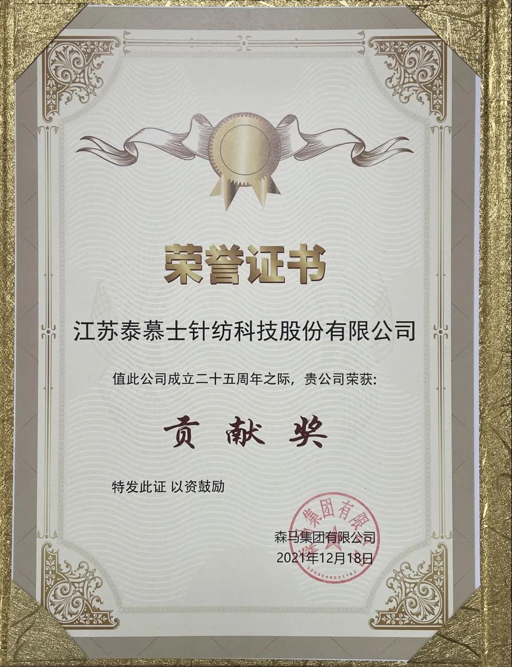 森馬股份有限公司對合作過程中表現(xiàn)突出的供應(yīng)商、代理商和公司工齡超過十年的忠誠員工進(jìn)行表彰。泰慕士榮獲“貢獻(xiàn)獎(jiǎng)”,并被授予森馬集團(tuán)的“戰(zhàn)略合作伙伴”。