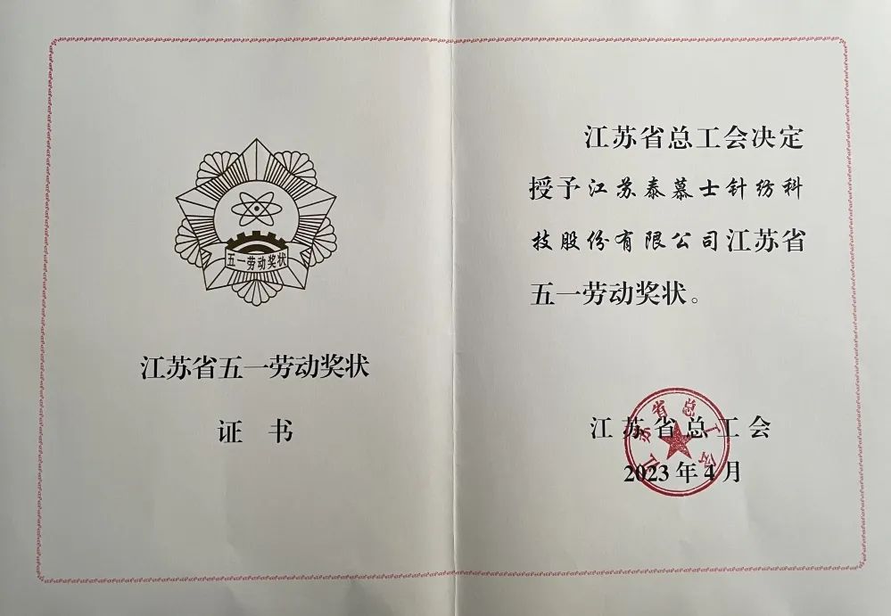 4月27日,南通慶祝"五一"國(guó)際勞動(dòng)節(jié)暨五一勞動(dòng)獎(jiǎng)命名大會(huì)召開。市委常委、組織部部長(zhǎng)封春晴出席會(huì)議并作重要講話。市人大常委會(huì)副主任、市總工會(huì)主席葛玉琴主持會(huì)議。市政府副市長(zhǎng)陳冬梅宣讀表彰及命名決定。市政協(xié)副主席金元等領(lǐng)導(dǎo)出席會(huì)議。在全體員工的努力下,泰慕士針紡科技股份有限公司獲“江蘇省五一勞動(dòng)獎(jiǎng)狀”榮譽(yù)稱號(hào)。
