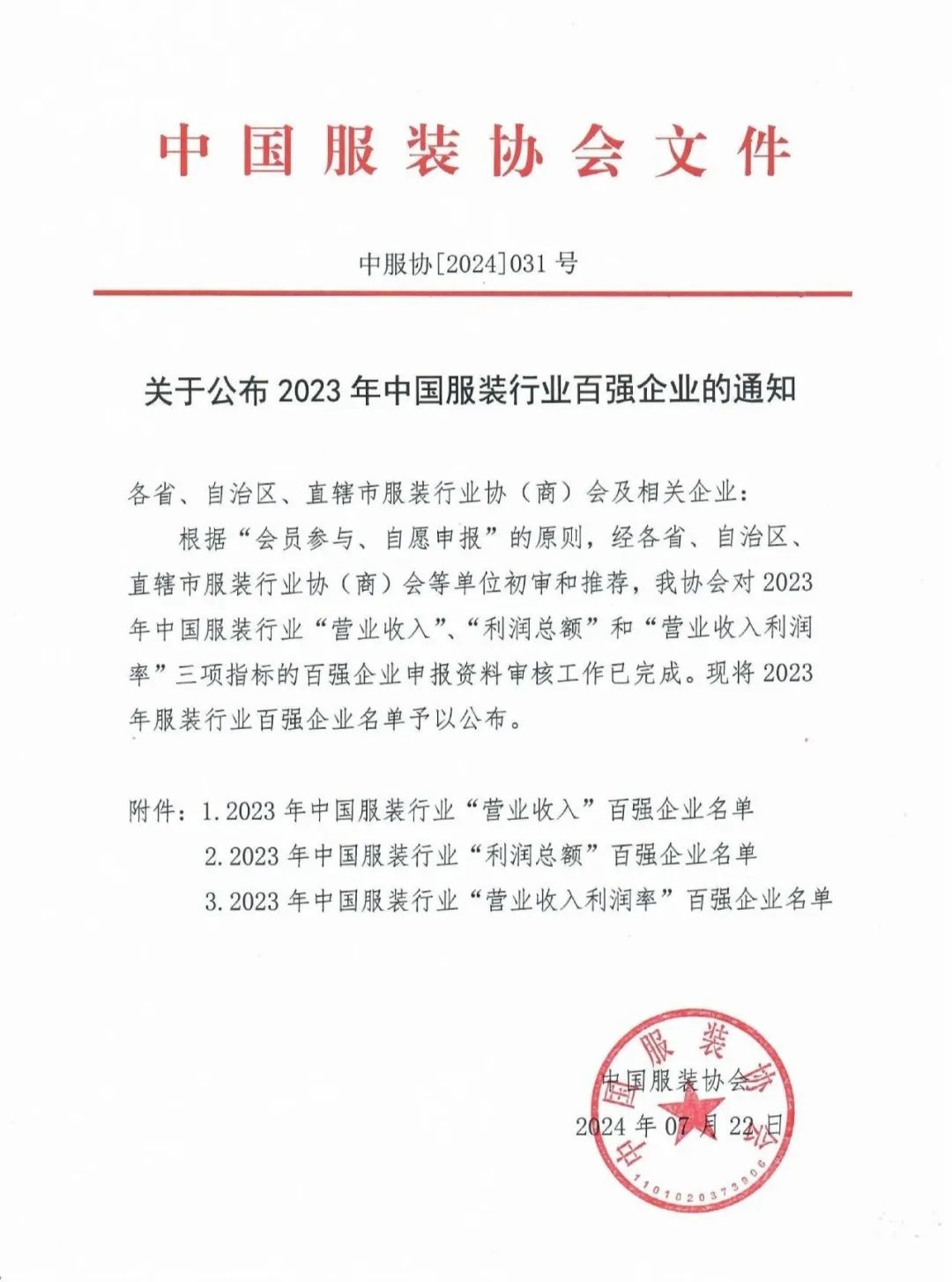 2023年度“中國(guó)服裝行業(yè)百?gòu)?qiáng)企業(yè)”名單
