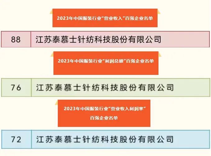 三榜齊鳴!泰慕士再登中國(guó)服裝百?gòu)?qiáng)榜!